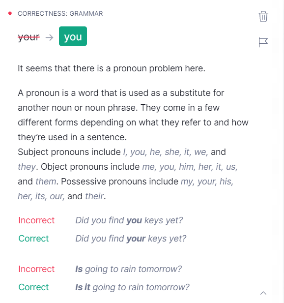 - It provides feedback on why your errors are being flagged, which you can use to improve your writing.