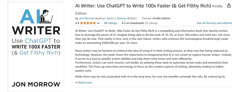 Not long ago, I self-published my first book, AI Writer, and I’ve gradually made 5,700 sales and counting, plus picked up 88 reviews.