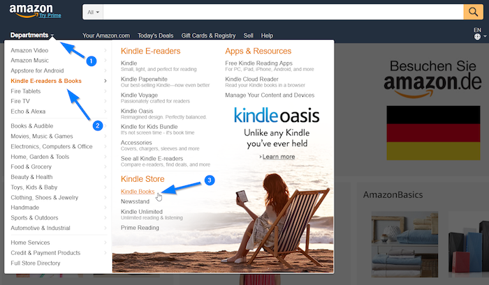 Select Kindle eBooks from the menu.